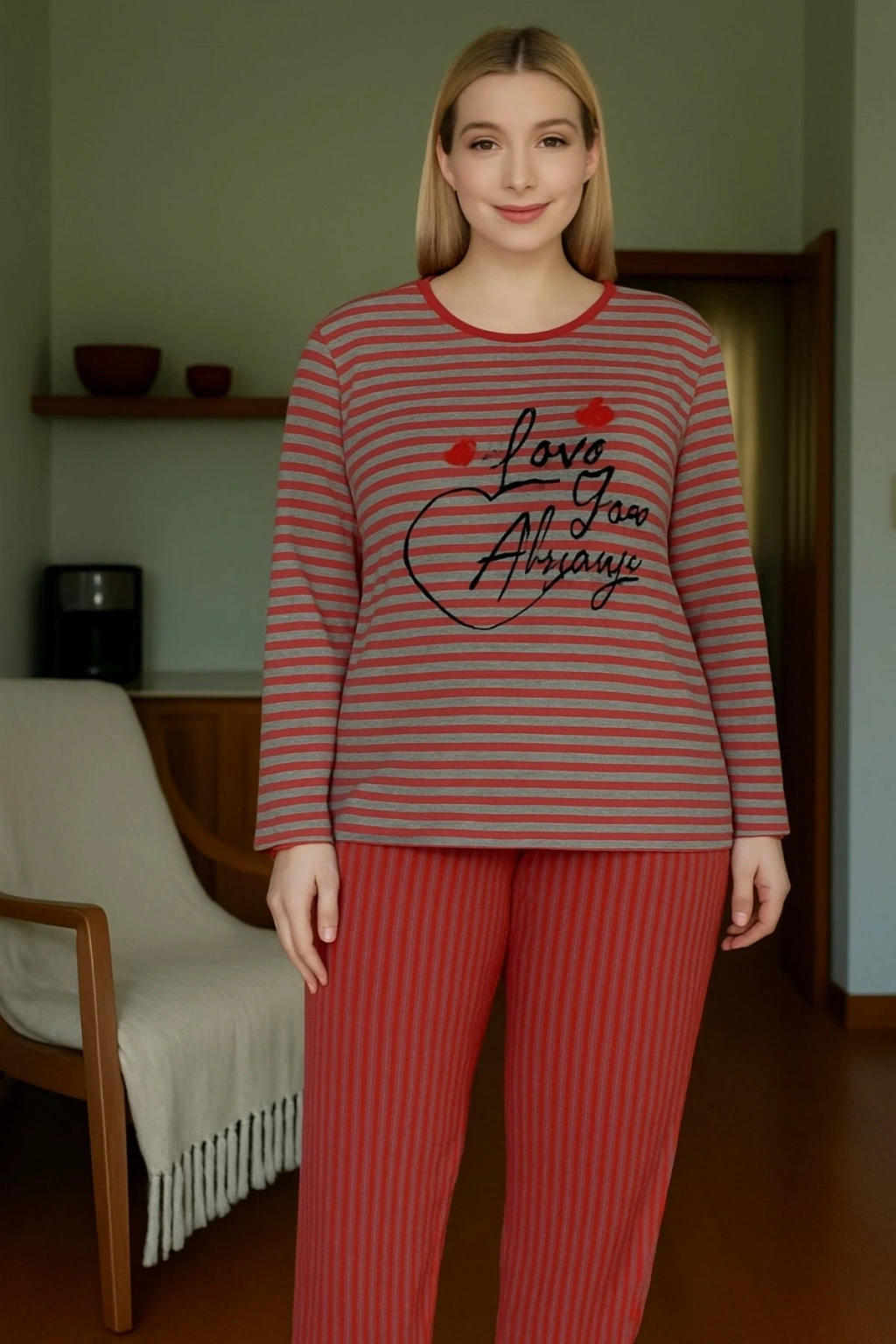 Enerji dolu geceler için tasarlanmış penye pijama takımı modelleri arasında yıldızlaşan çizgili penye pijama takımı kırmızı çizgili ürünü, ev giyiminizi sıcak bir dokunuşla renklendiriyor! %100 pamuklu penye kumaşı sayesinde cildinize ipek gibi nazikçe sarılan bu kadın pijama takımı, kırmızı tonlu ince çizgileriyle hem seksi hem de modern bir stil sunuyor. Uzun kollu üst ve elastik bel detaylı pantolon kombinasyonuyla, kış akşamlarında bile sıcak tutarken ferahlık sağlıyor. Pamuklu pijama takımı arayışındaki kadınlar için vazgeçilmez olan bu model, nefes alan yapısıyla her mevsimin favorisi – özellikle desenli pijama takımı sevenlere kırmızı desenlerin canlı enerjisiyle hitap ediyor. Kırmızı çizgilerin tutkulu havası, yatak odanızı romantik bir atmosfere dönüştürürken sadeliği koruyor; mükemmel bir ev pijaması olarak öne çıkıyor!