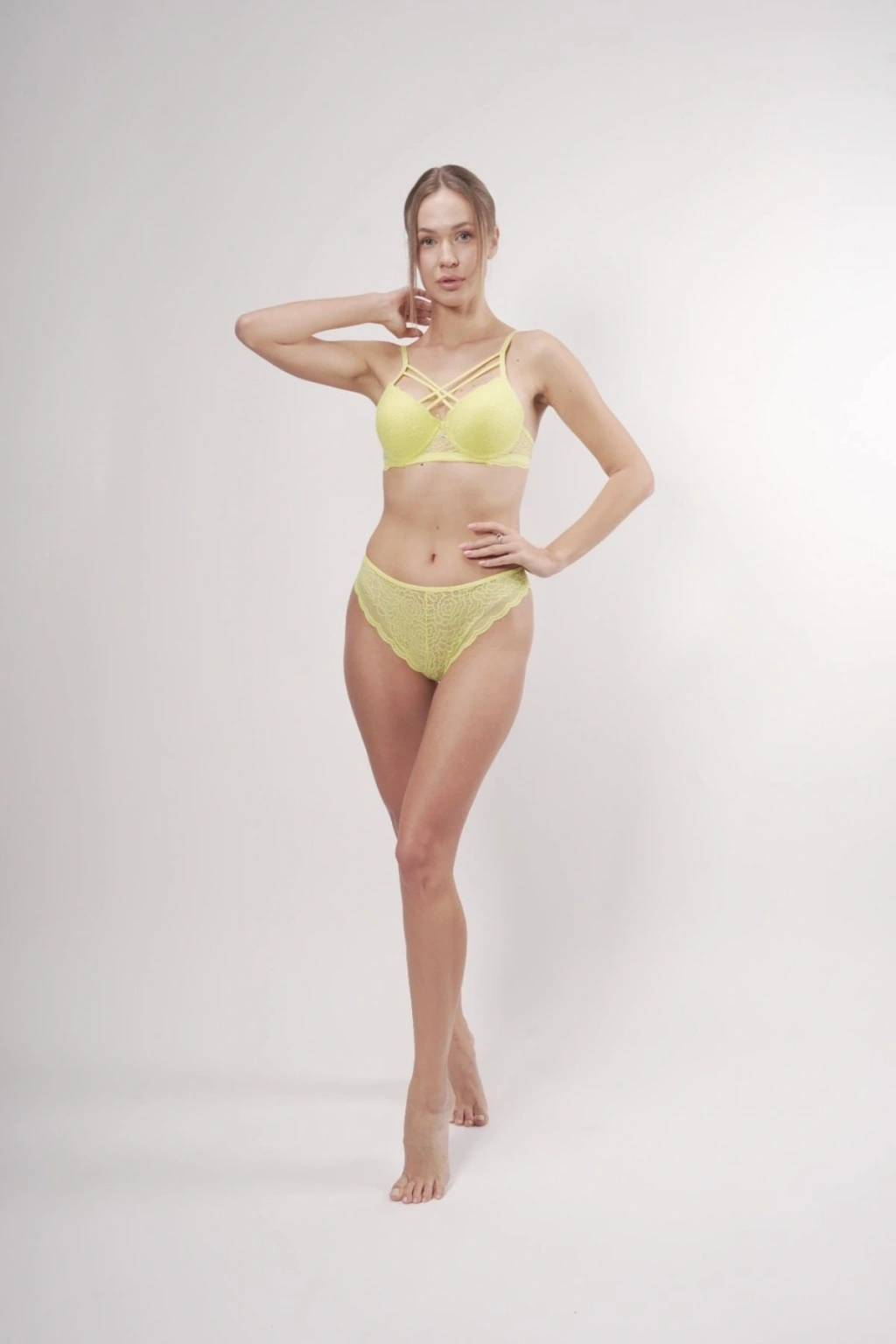 Takımın alt parçası olan Brazilian kesim, vücut hatlarını zarifçe ortaya çıkaran konforlu yapısıyla hem gündelik kullanım hem de özel kombinlere ideal bir tamamlayıcıdır. Yumuşak dokulu premium kumaşı sayesinde ciltte iz yapmaz, gün boyu rahatlık sağlar.