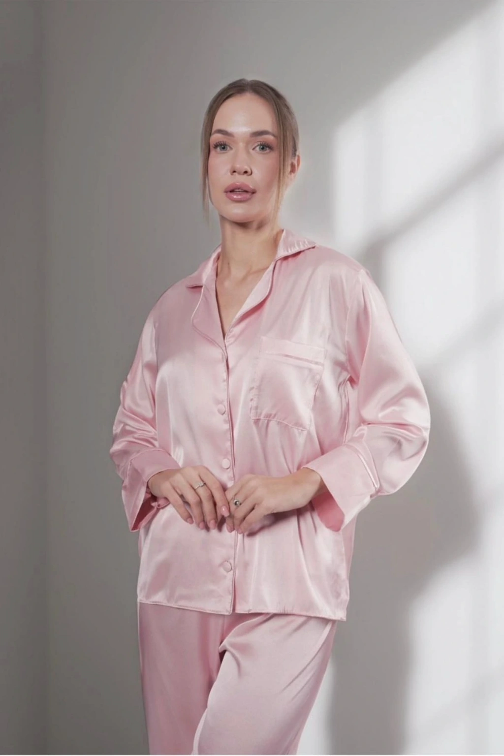 Bu saten ikili pijama, en çok satan kadın pijamaları arasında yer alıyor. Müşterilerimiz "Pudranın yumuşak tonuyla kendimi prenses gibi hissediyorum, dokusu muhteşem!" diyor. Eğer rahat saten pijama veya pastel pudra pijama takımı istiyorsanız, GİZOTTİ kalitesiyle tanışın.