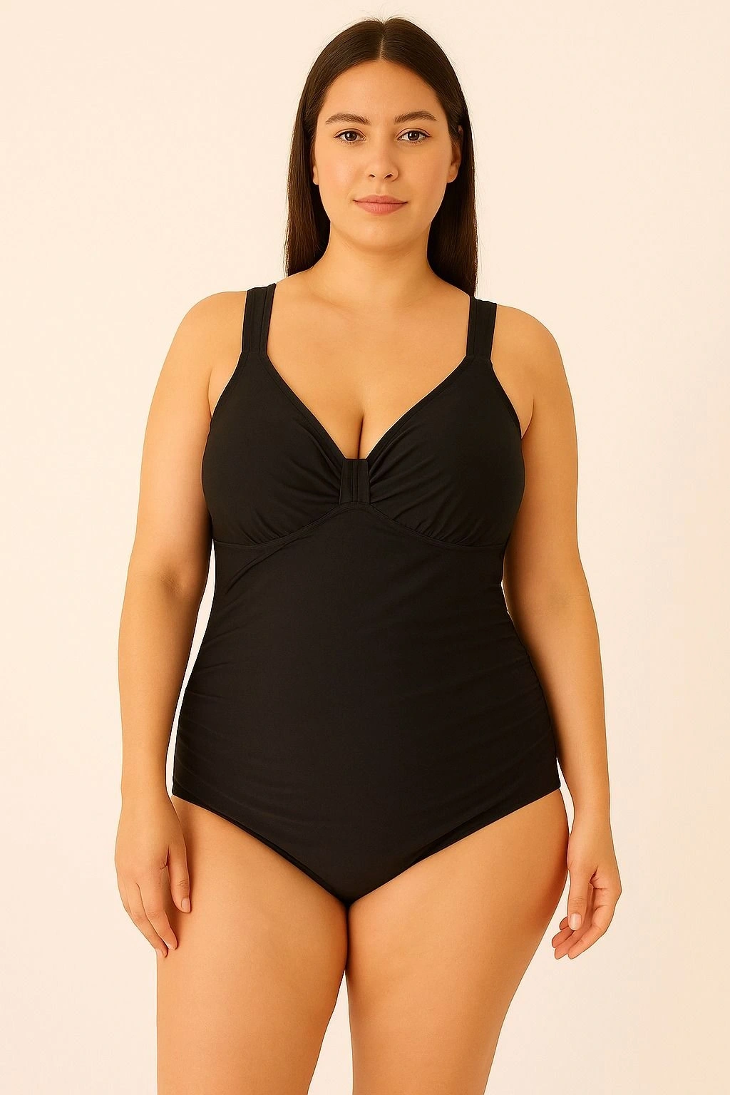 Model: Tek parça mayo, göğüs kısmında büzgü detayı