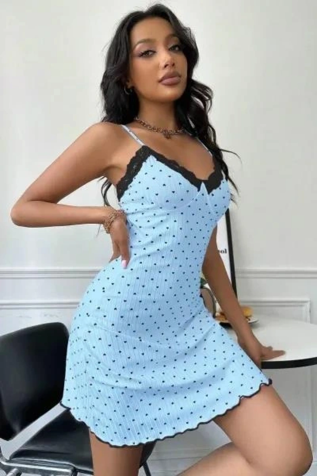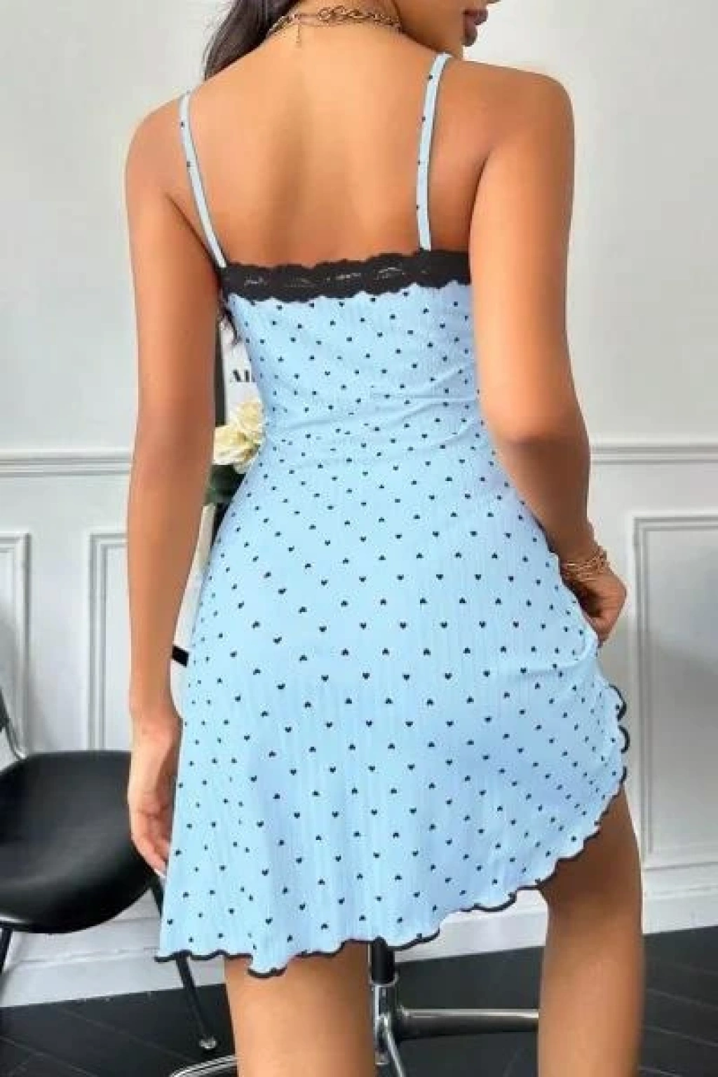 Kadın Bebe mavisi Kalp Desenli Askılı Dantel Detaylı Elbise 5068