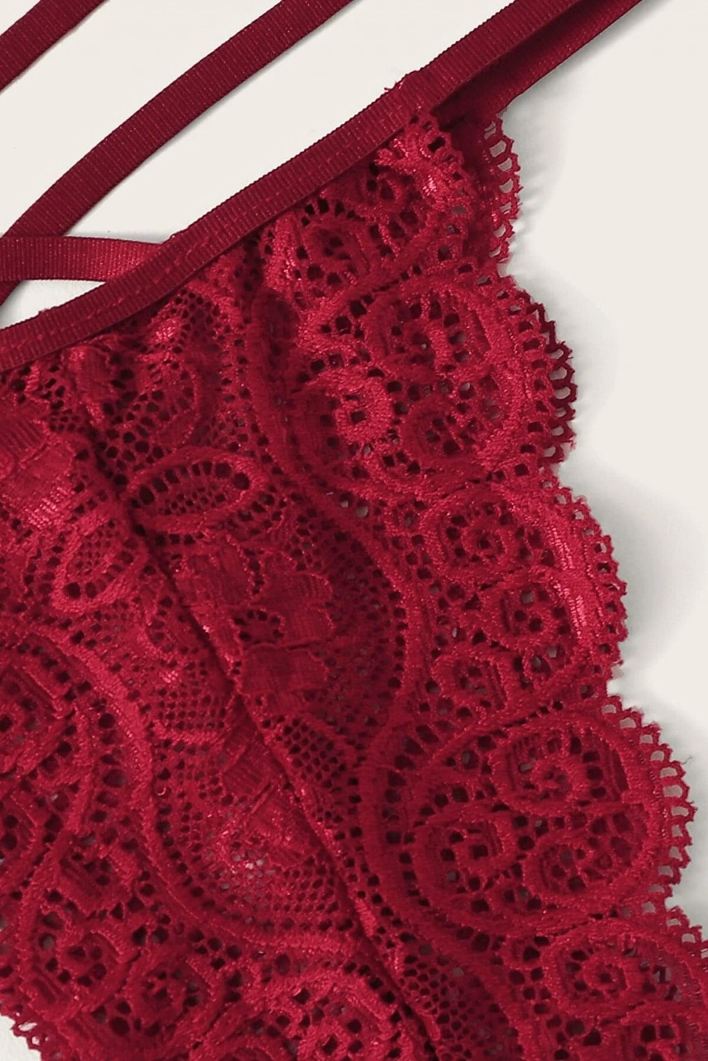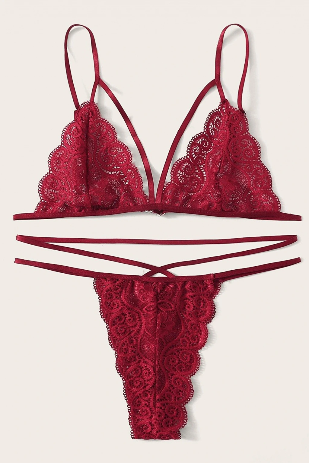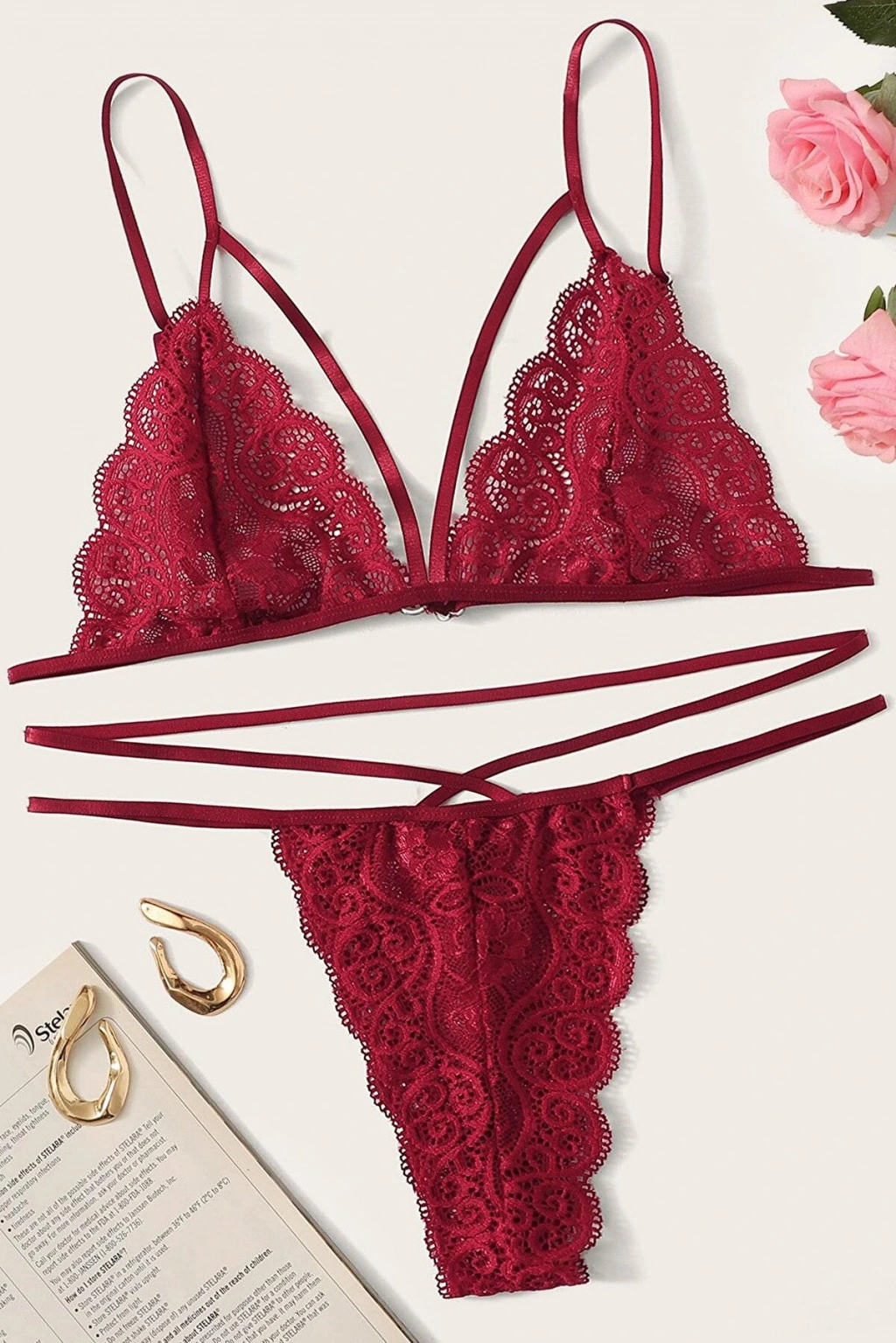 Bordo Çapraz Ip Detaylı Şık Sütyen Külot Takım