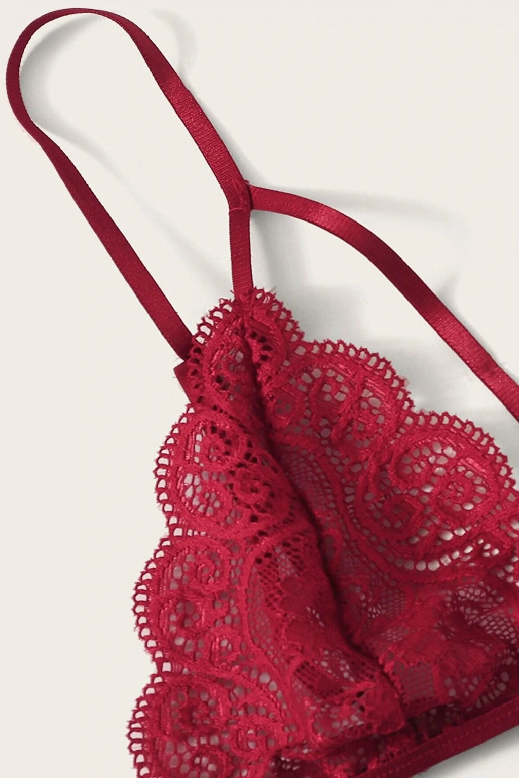 Kadın Bordo Dantelli & Kurdelalı Sütyen Külot Takımı