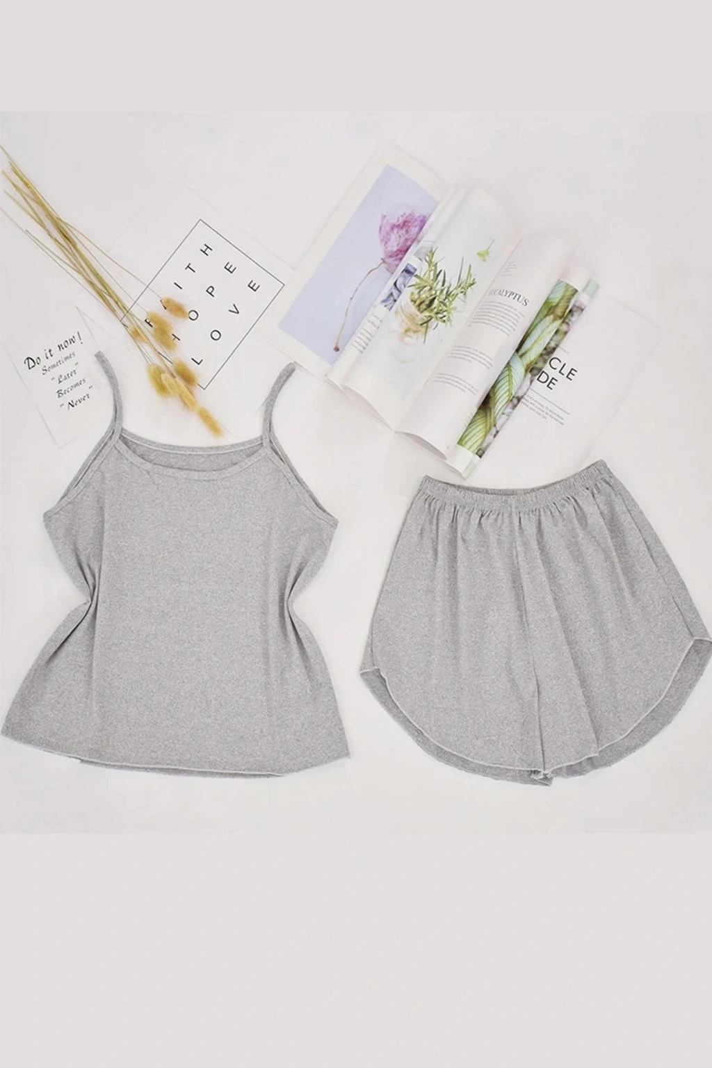 Kadın Gri Askılı Crop Top ve Şortlu Gecelik Takım