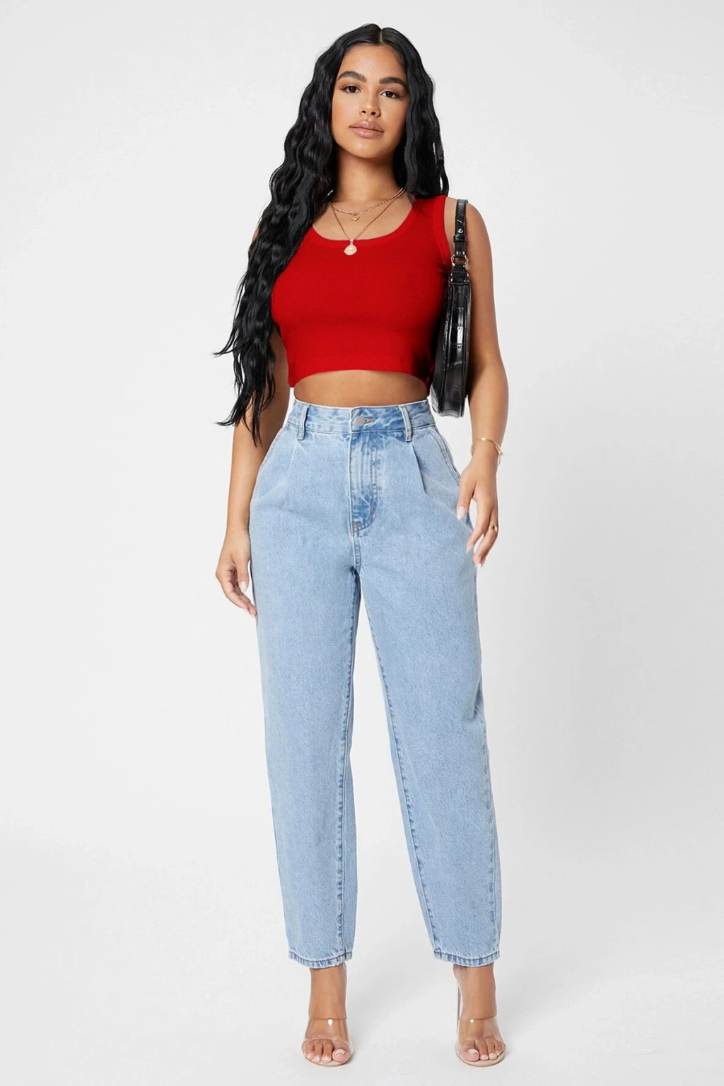 Kadın Kırmızı Kare Yaka Crop Top Bluz