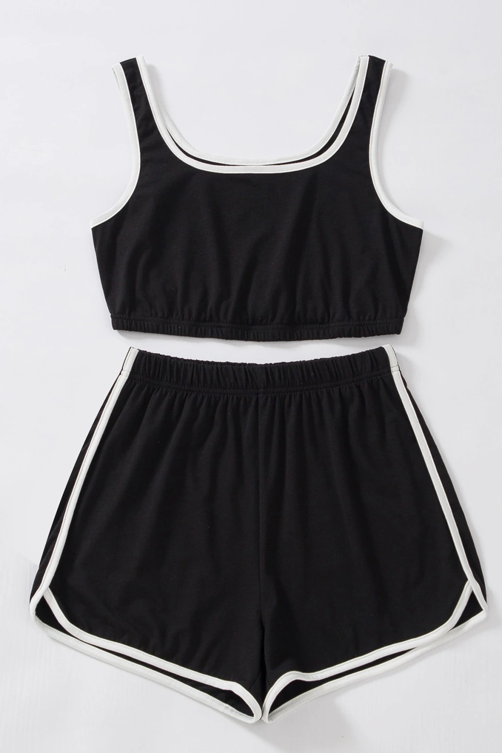 Kadın Siyah Askılı Crop Top ve Şortlu Gecelik Takım