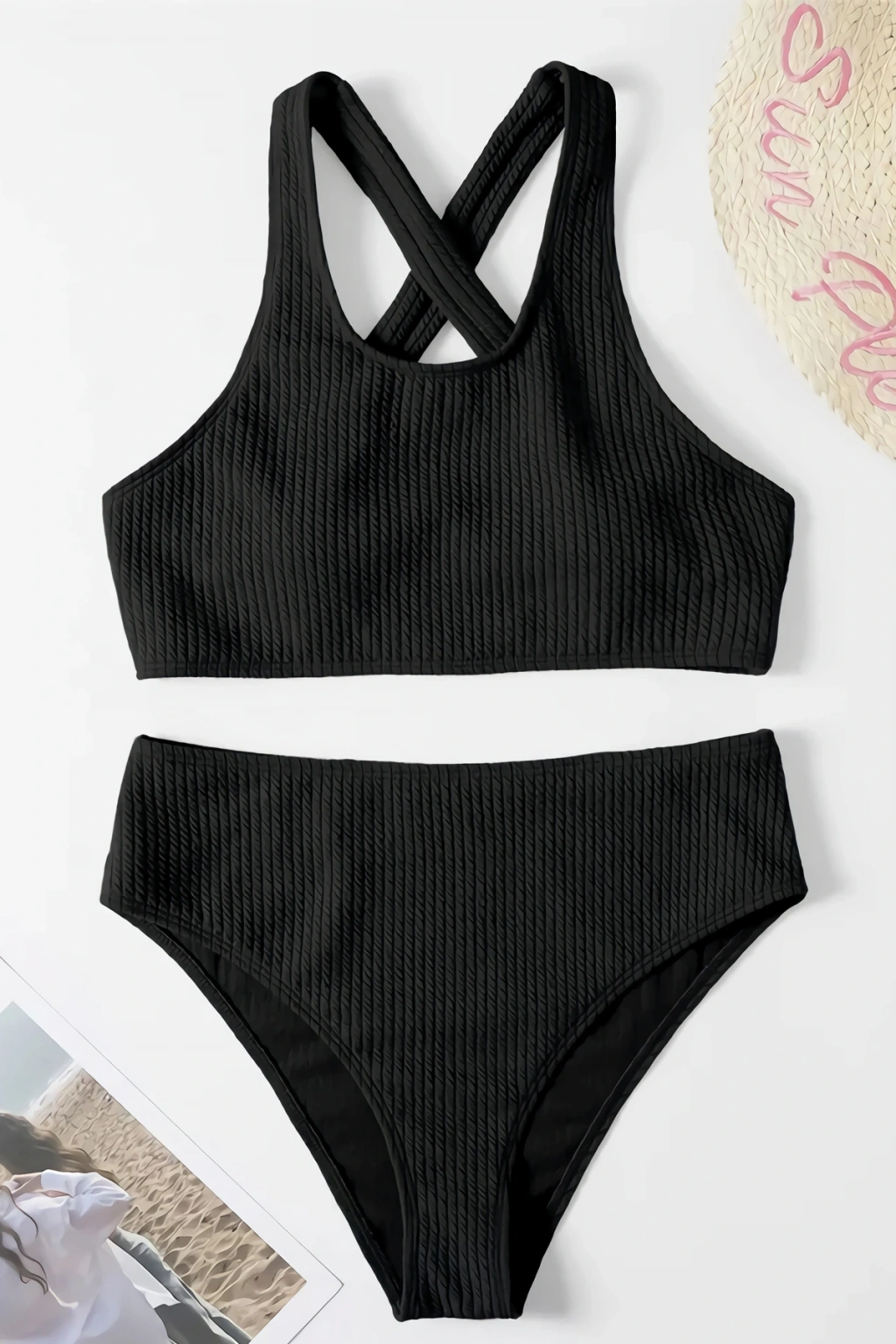 Kadın Siyah Çapraz Sırt Detaylı Şık Bralet Takım