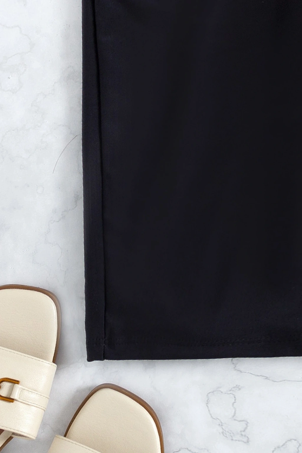Kadın Siyah Yırtmaçlı Etek Görünümlü Şık Deniz Şortu