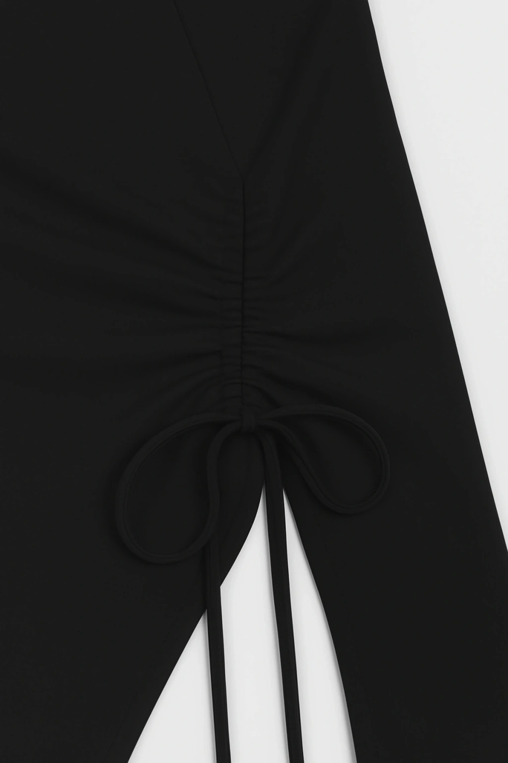 Detay: Drapeli, yan bağlamalı, vücuda oturan tasarım