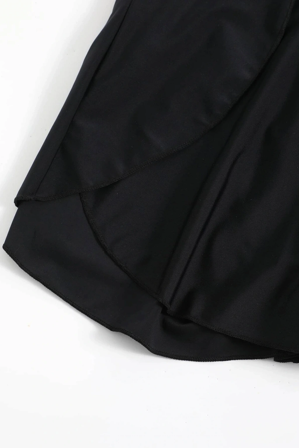 Kadın Siyah Yırtmaçlı Etek Görünümlü Şık Deniz Şortu