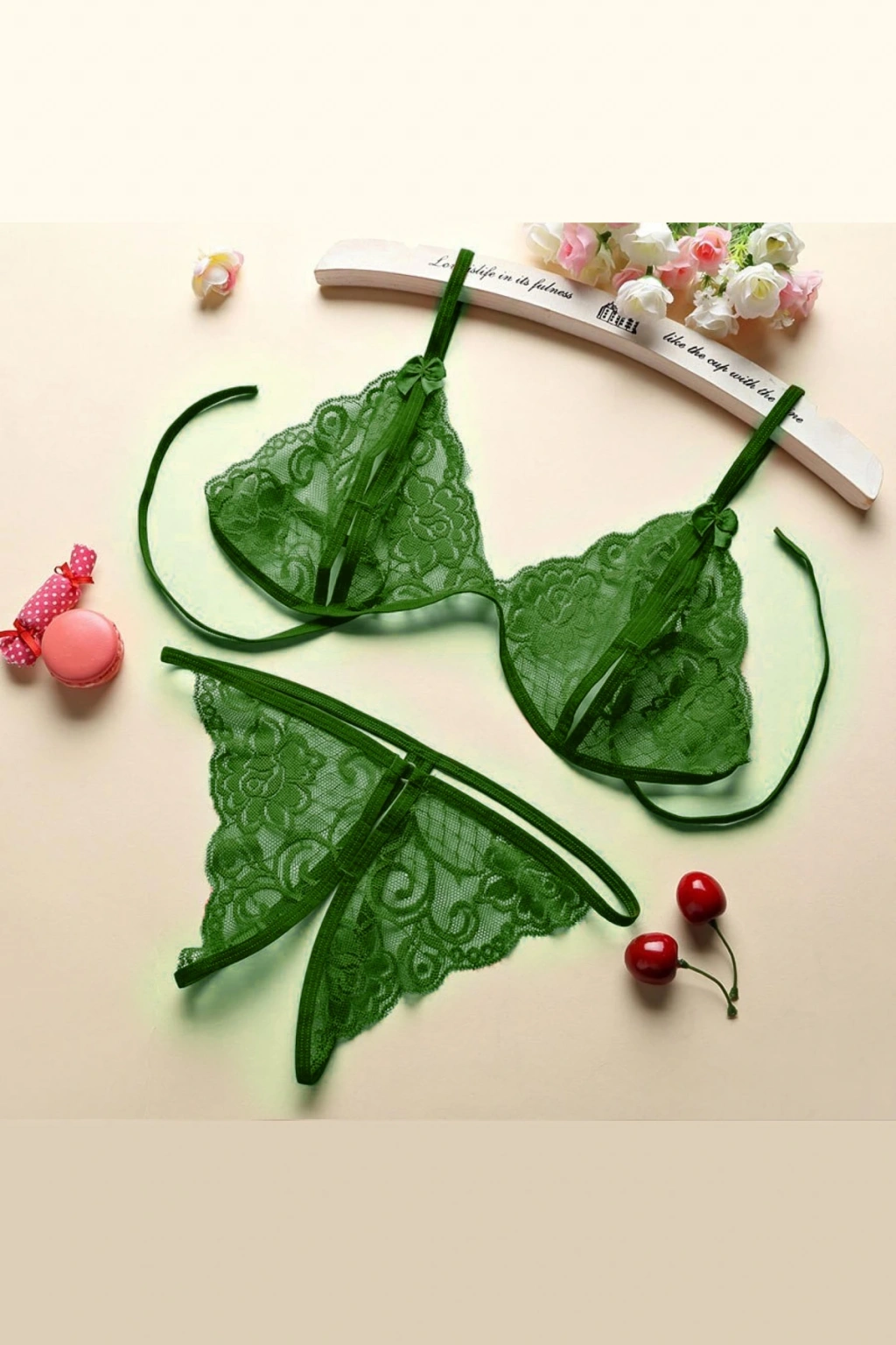 Kadın Yeşil Dantelli Sütyen Külot Takımı