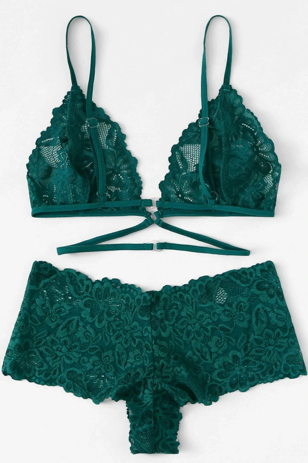 Kadın Yeşil Çapraz Sırt Detaylı Şık Bralet Takım