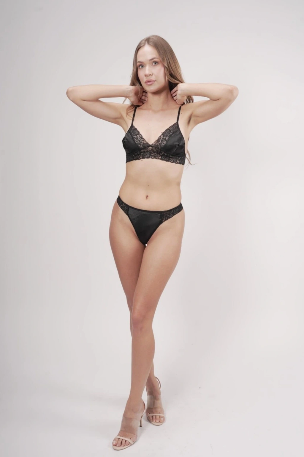 Saten Dantel Detaylı Sütyen Siyah String Takım – Şıklığın ve Zarafetin En Çekici Hali