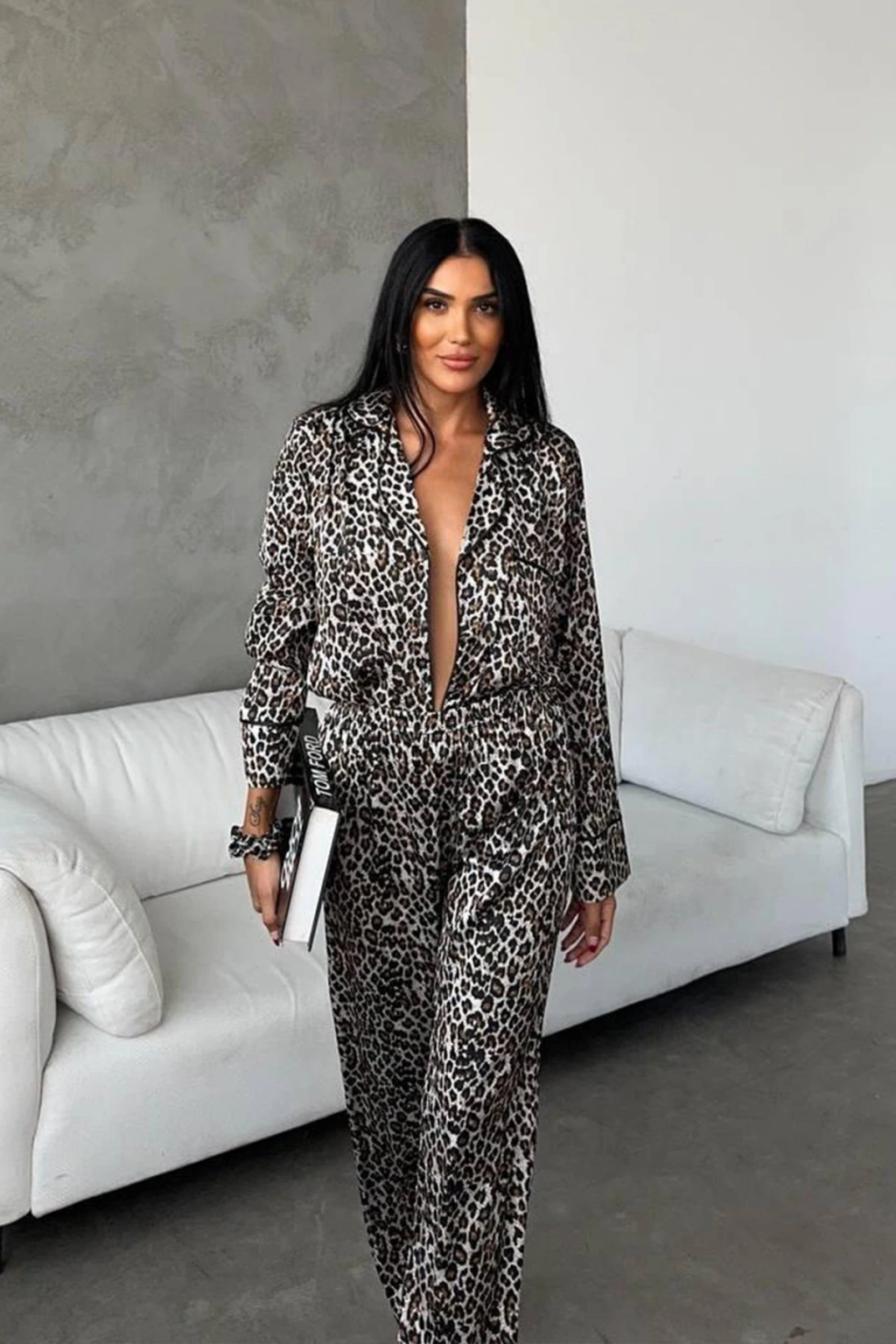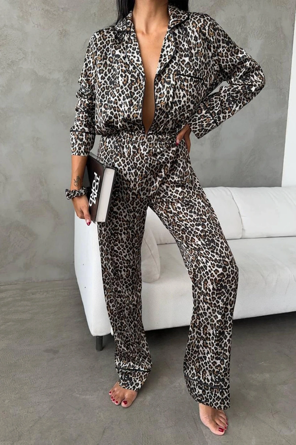 Doğal desenlerin enerjisiyle modern bir stil sunan bu pijama, evde hem şık hem de konforlu görünmek isteyenler için ideal. Kendi tarzınızı yansıtırken lüks bir dokunuş hissedin!